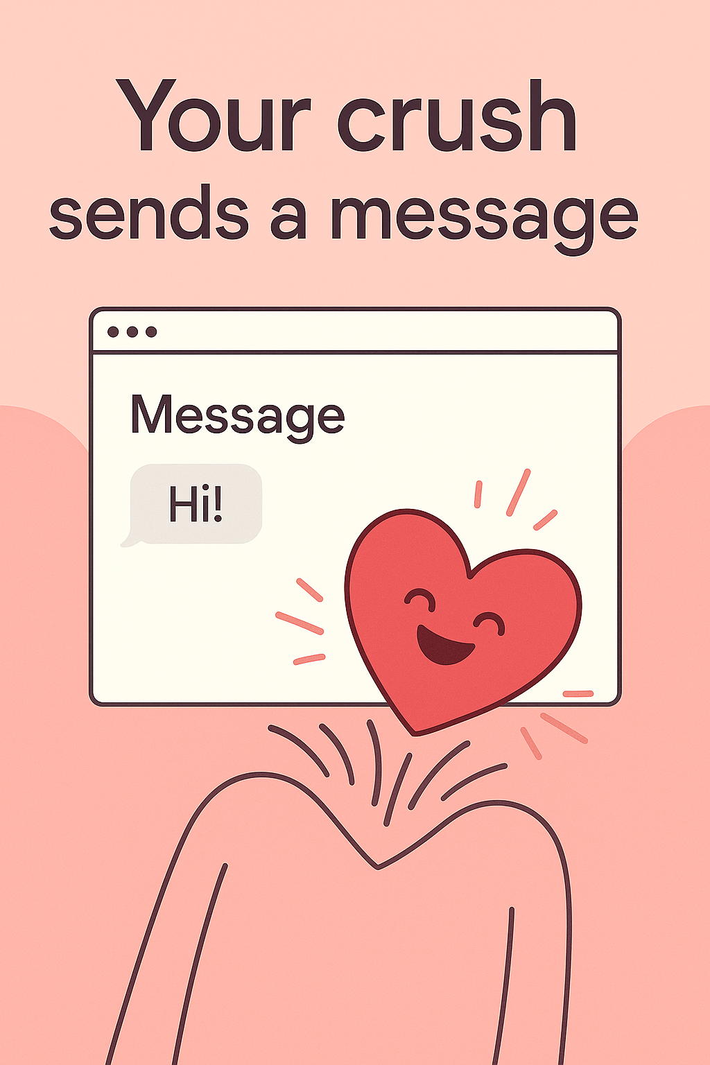 Whimsical digital illustration depicting a heart character reacting to a message notification, ideal for social media posts or romantic-themed content.