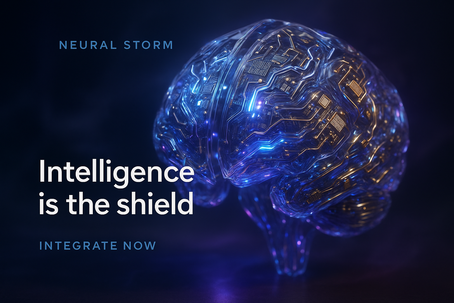 Hyperrealistic Neural Storm Scene with Glowing Intelligence Shield