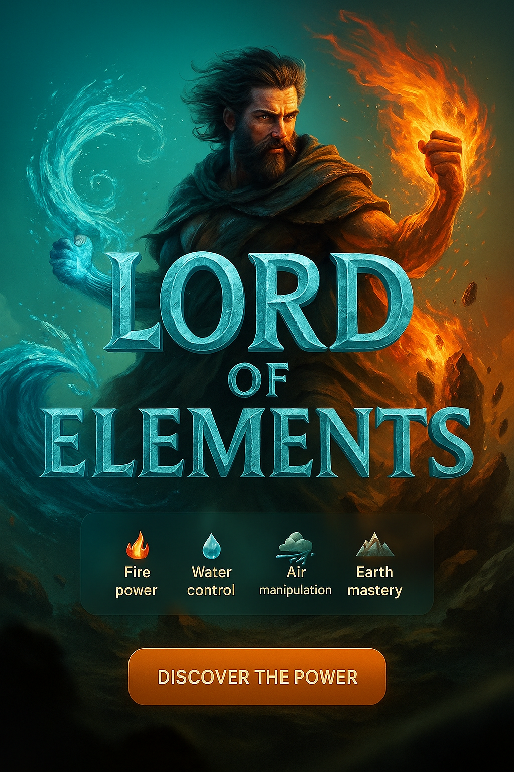 Dynamic Hero Section of Lord of Elements with Realistic Design