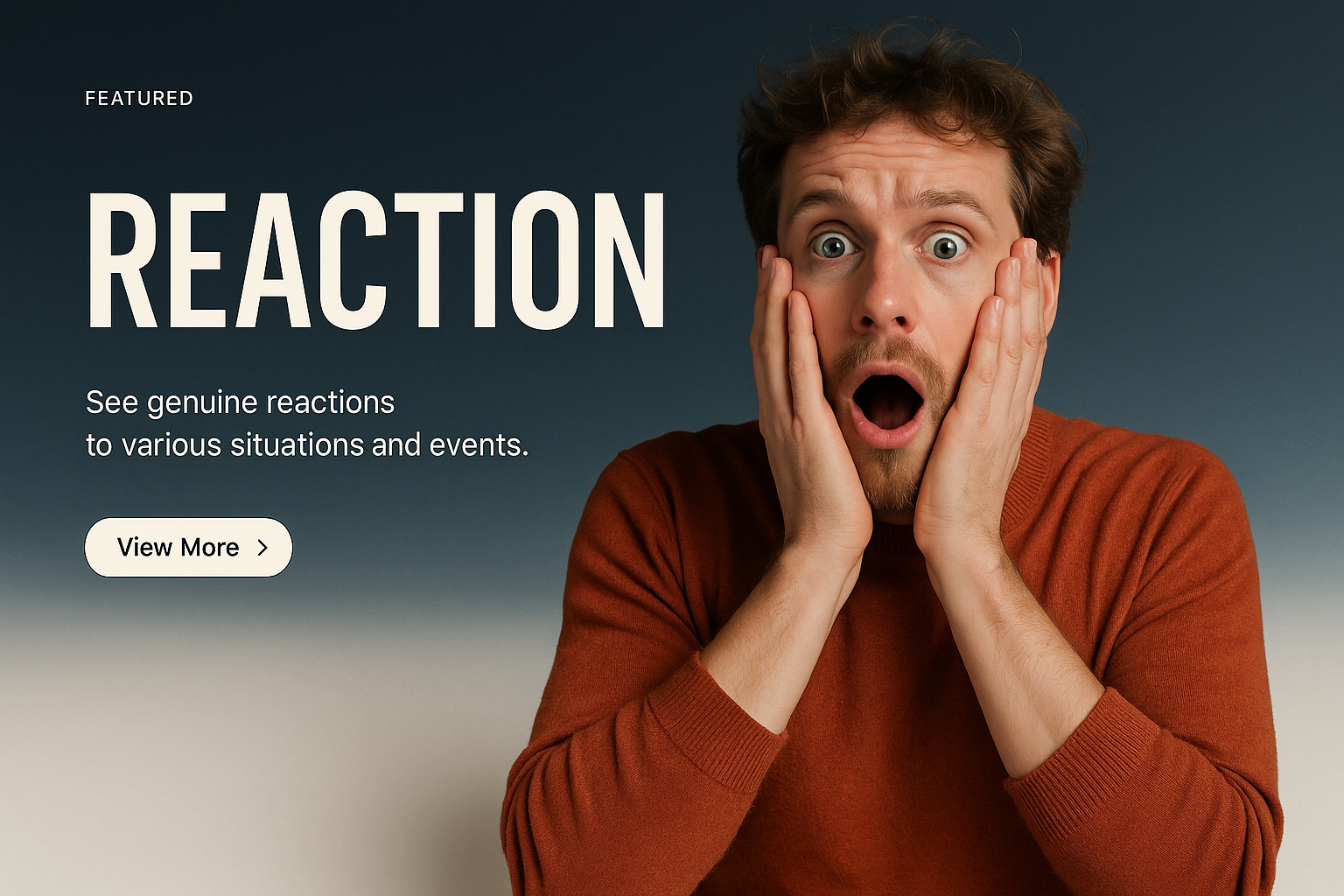 A contemporary web page featuring a surprised man with hands on his face, showcasing a gradient background and clear text elements for a reaction theme.