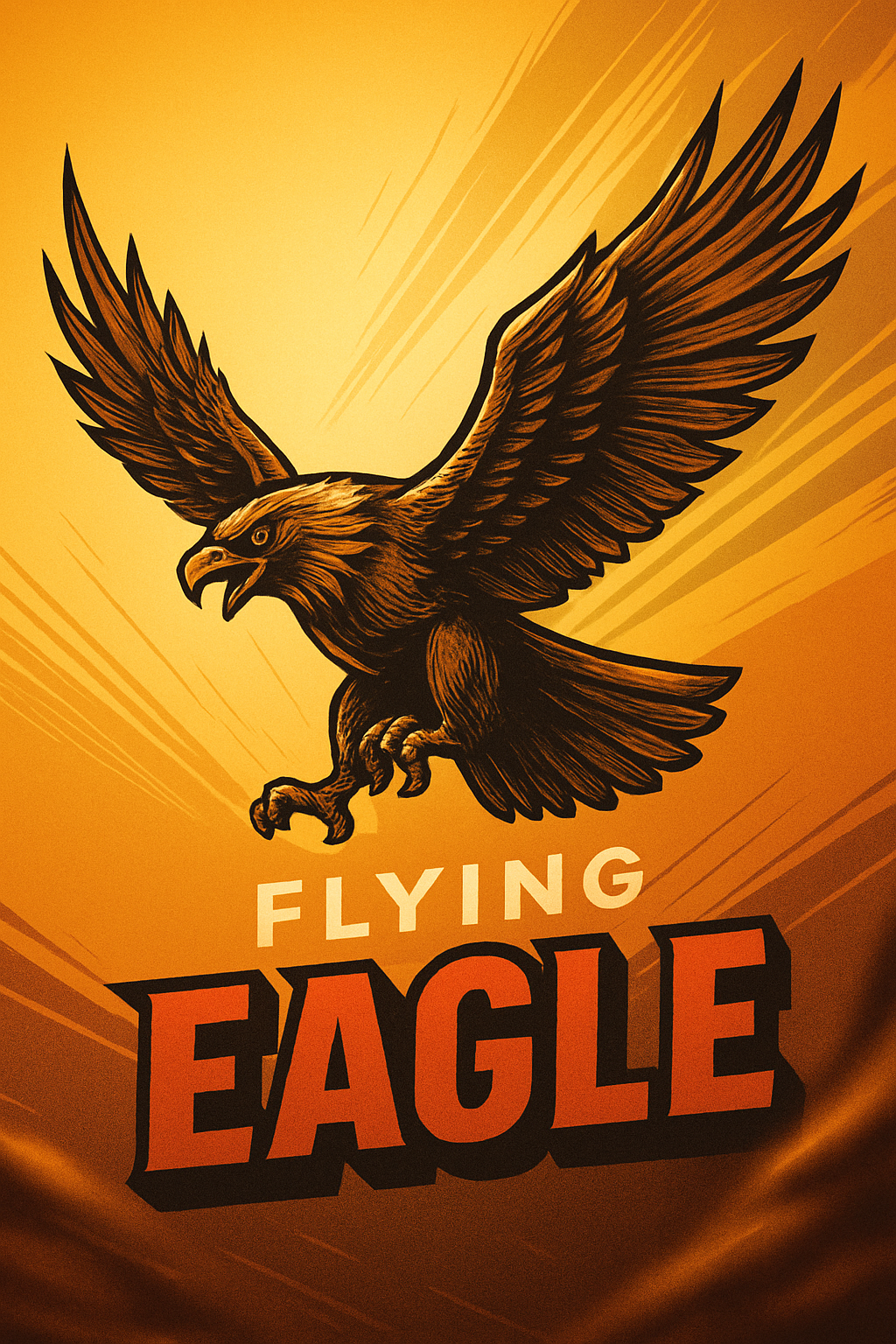 /Collection: /by davooda/Type: PNG/A striking illustration of a flying eagle in an engraving style, set against a dynamic gradient background. The logo features bold typography emphasizing 'FLYING EAGLE'.
