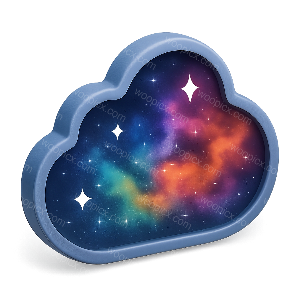 /Premium/Collection: /by davooda/Type: PNG/A vibrant 3D icon depicting a nebula within a cloud shape, showcasing colorful cosmic clouds and stars against a dark background, rendered in an isometric view.