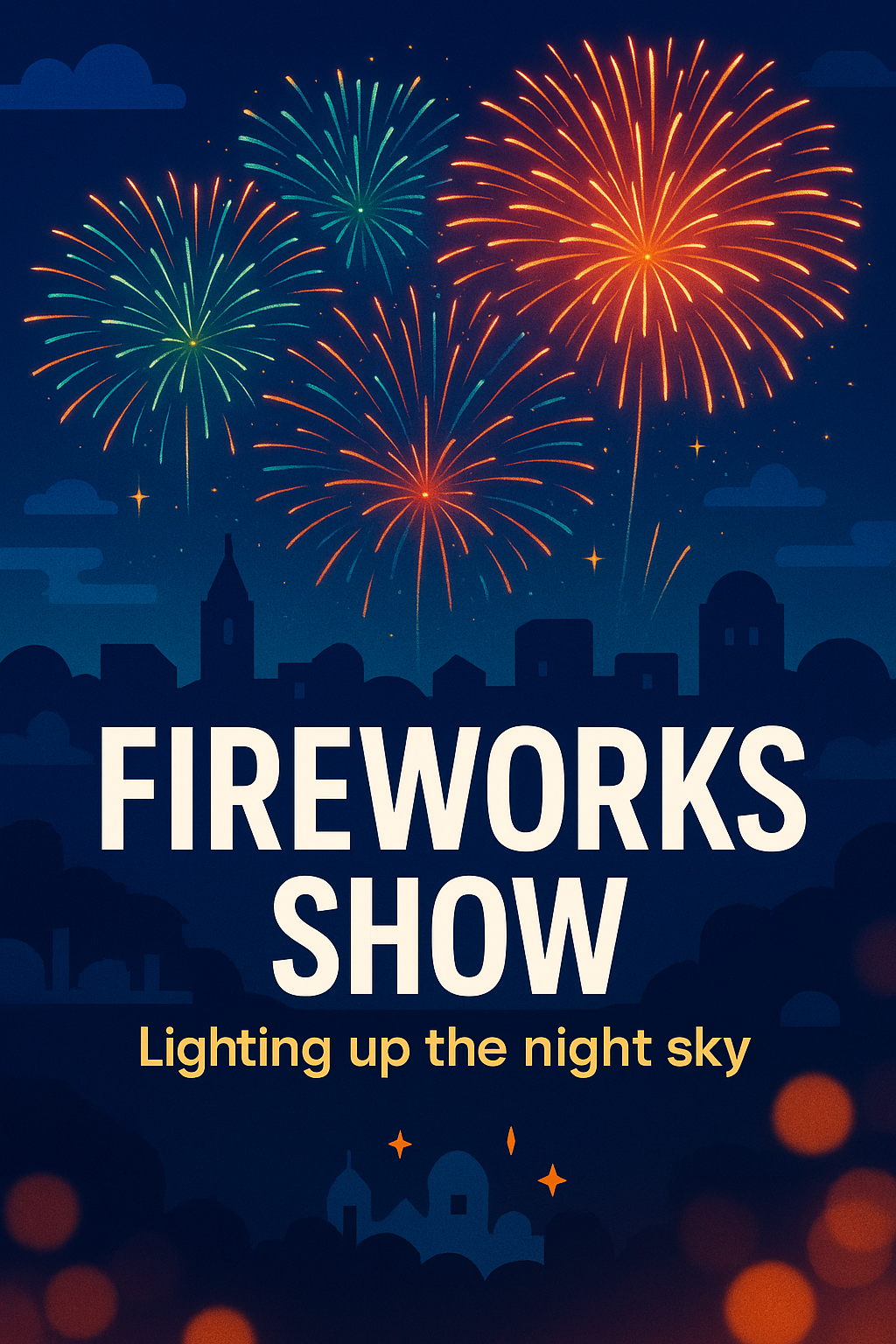 /Collection: /by davooda/Type: PNG/An engaging poster design showcasing a fireworks display against a night sky, perfect for promoting events or celebrations. The vibrant colors and festive theme create an inviting atmosphere.