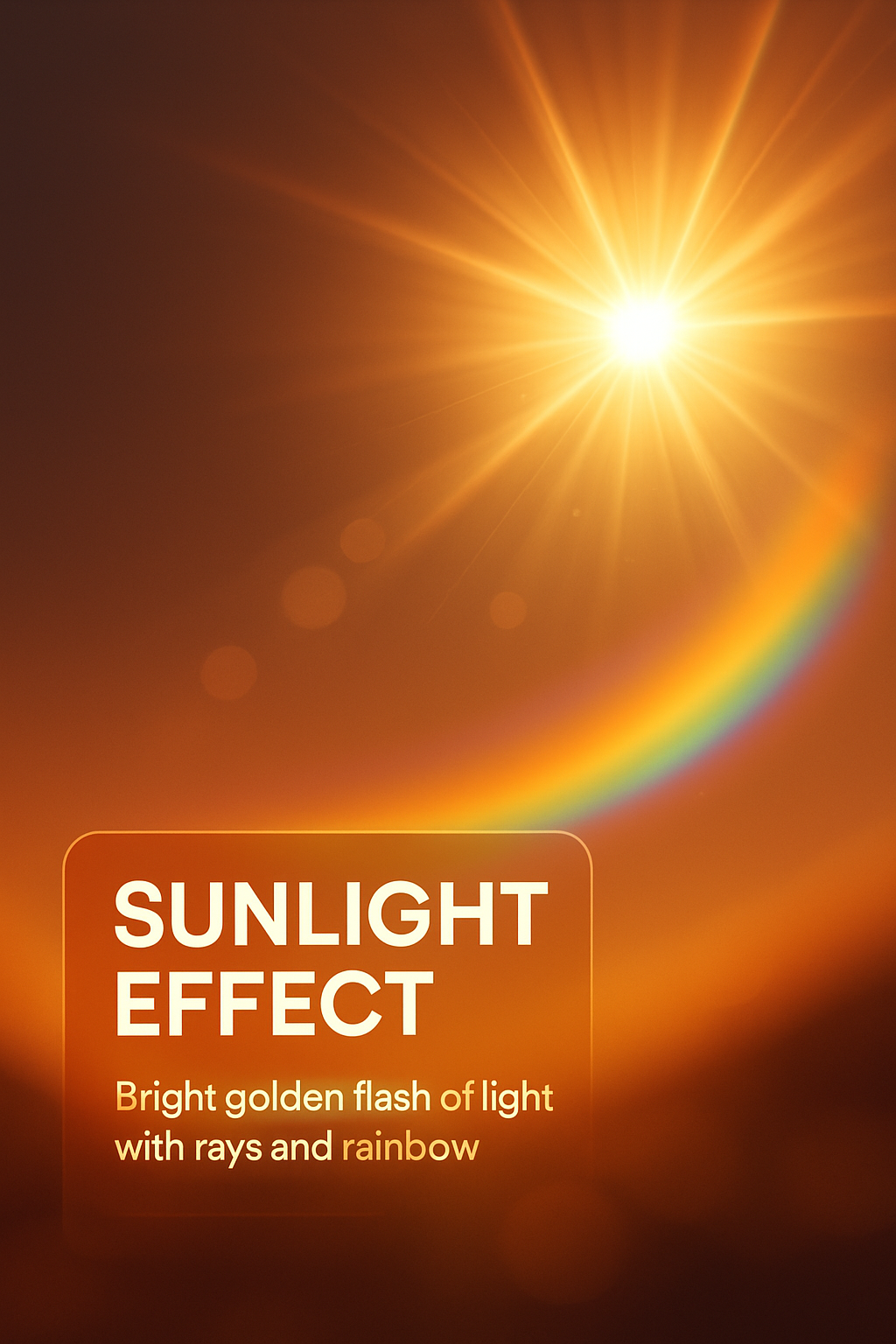 An artistic representation of sunlight with golden rays and a rainbow effect. Ideal for backgrounds or designs focused on nature or positivity.