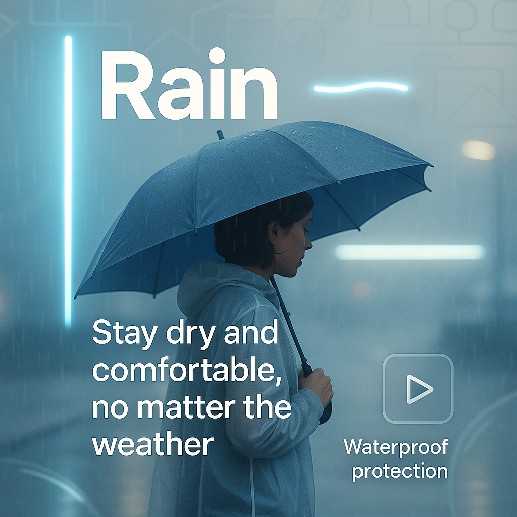 Promotional Image for Waterproof Rain Gear Featuring Person with Umbrella