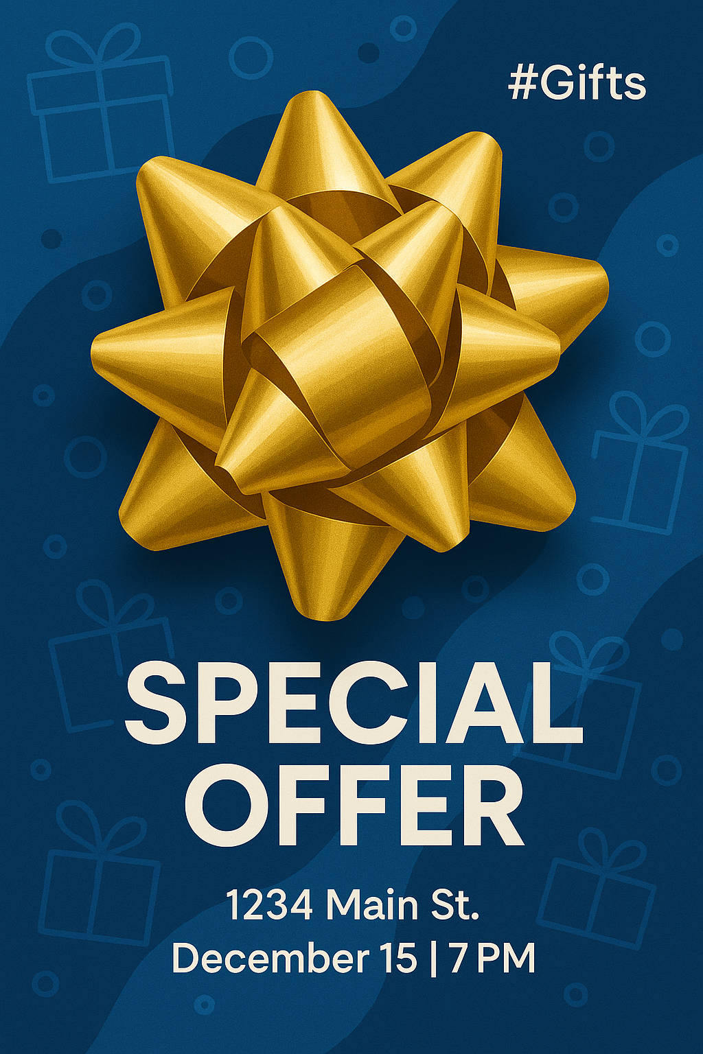 Promotional Graphic Featuring a Golden Bow and Special Offer Details