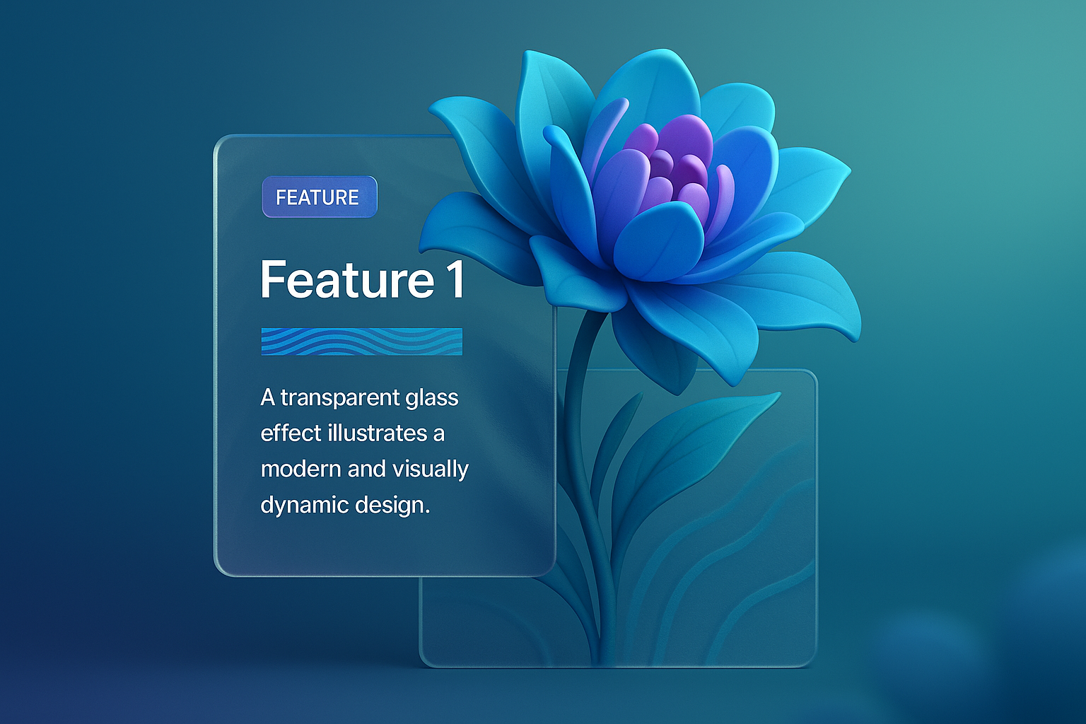 A vibrant 3D illustration of a blooming flower against a smooth gradient background, featuring a transparent glass effect that enhances modern design elements.