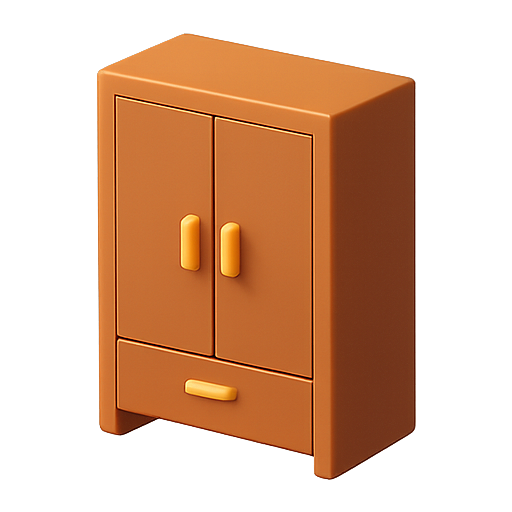 A vibrant 3D rendering of a cabinet featuring a minimalist design with rounded edges and a warm color palette, suitable for use in digital graphics and product presentations.