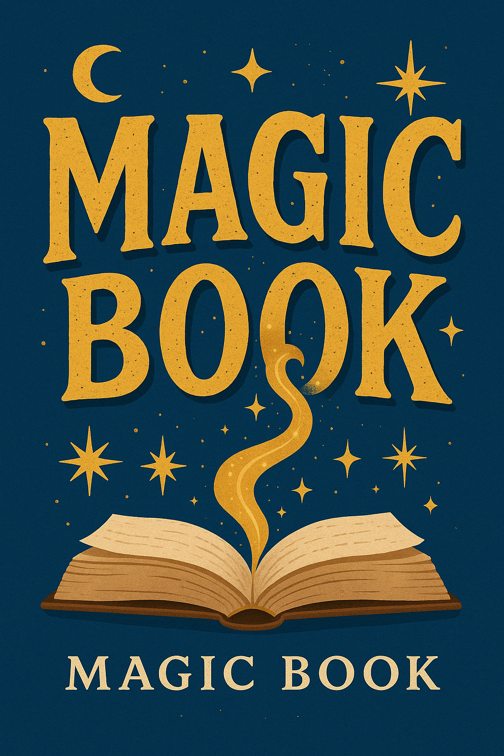 A whimsical book cover design featuring an open book with magical elements, ideal for fantasy literature or children's books. The vibrant colors and playful typography create an enchanting feel.