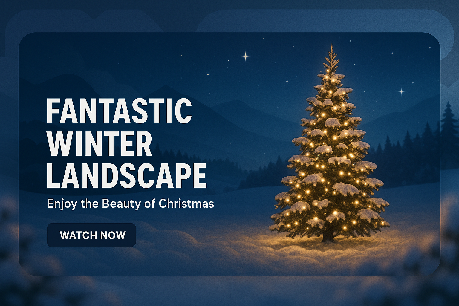 A visually appealing promotional banner featuring a beautifully lit Christmas tree set in a serene winter landscape, ideal for holiday-themed marketing or seasonal promotions.