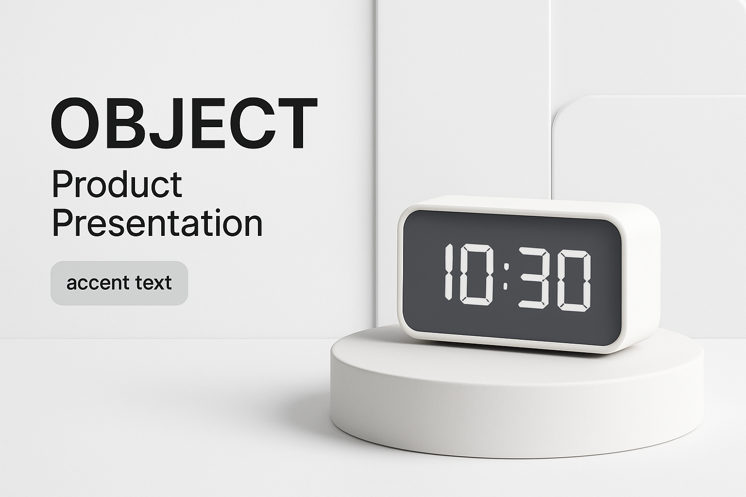 Modern Product Display with Clock and Typography