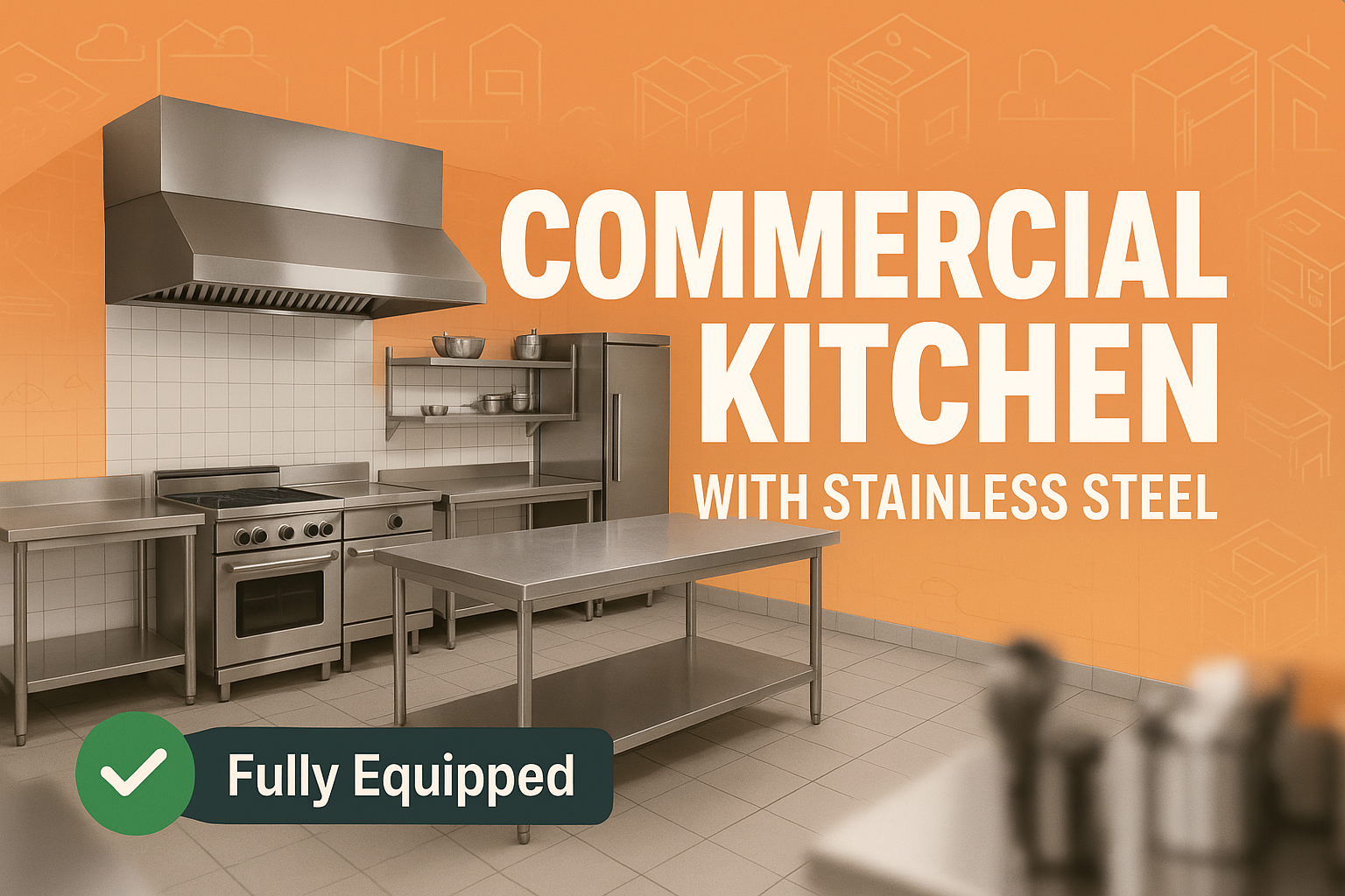 Modern Commercial Kitchen Setup with Stainless Steel Fixtures