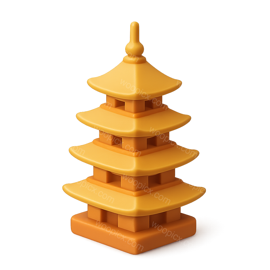/Premium/Collection: /by davooda/Type: PNG/A vibrant 3D representation of a pagoda with a golden hue, featuring multiple tiered roofs. The design showcases a three-quarter view, emphasizing its volumetric and isometric qualities on a transparent background.