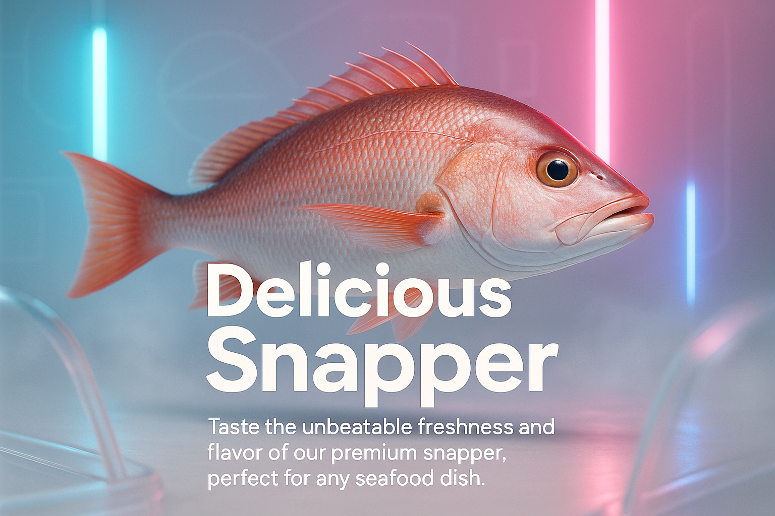A visually engaging promotional image showcasing a fresh snapper fish, designed with modern lighting effects, ideal for seafood marketing and culinary promotions.