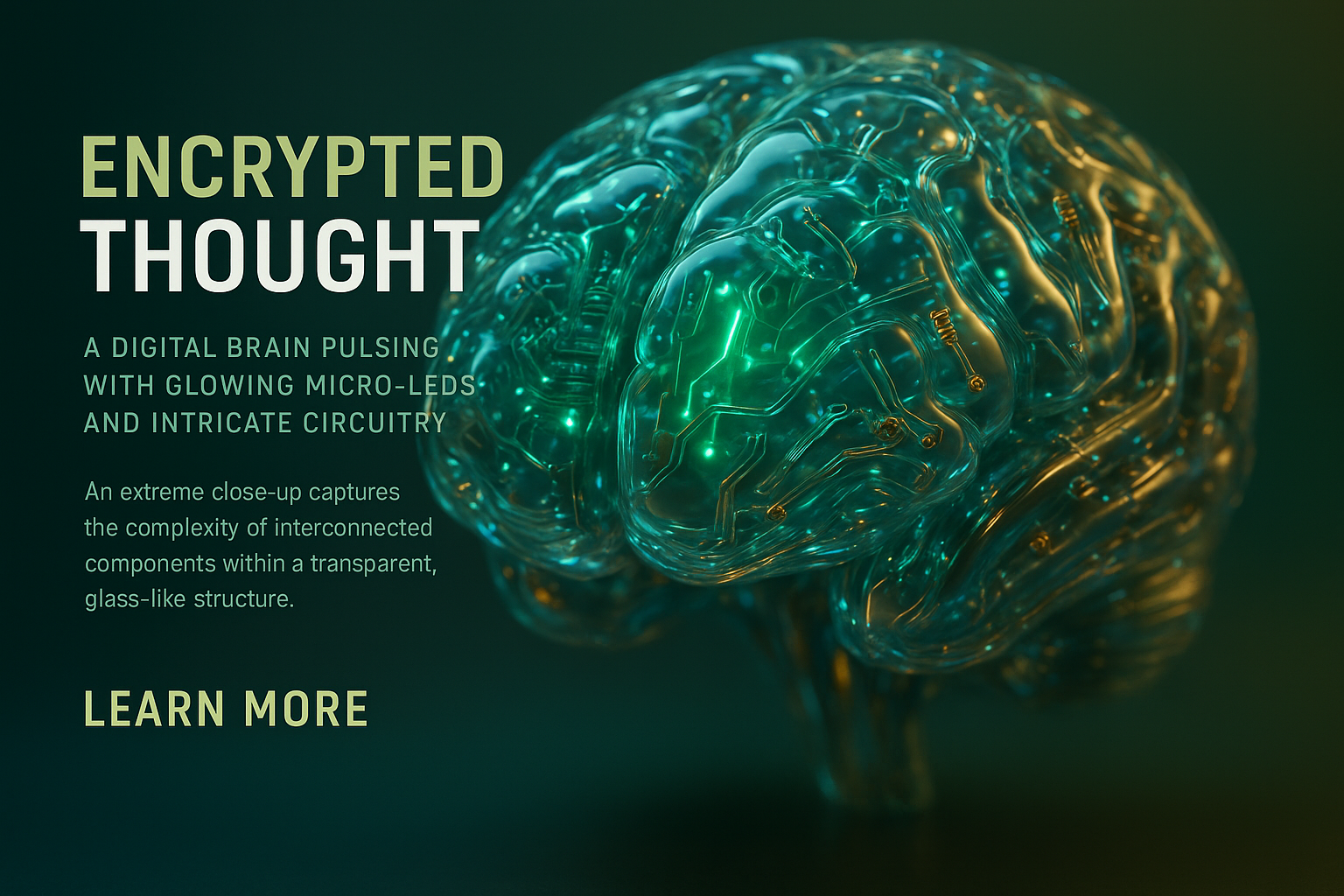 /Collection: /by davooda/Type: PNG/A close-up view of a digital brain made from glass-like polymers, showcasing glowing micro-LEDs and intricate circuitry, highlighted by soft neon lighting and a gradient background.