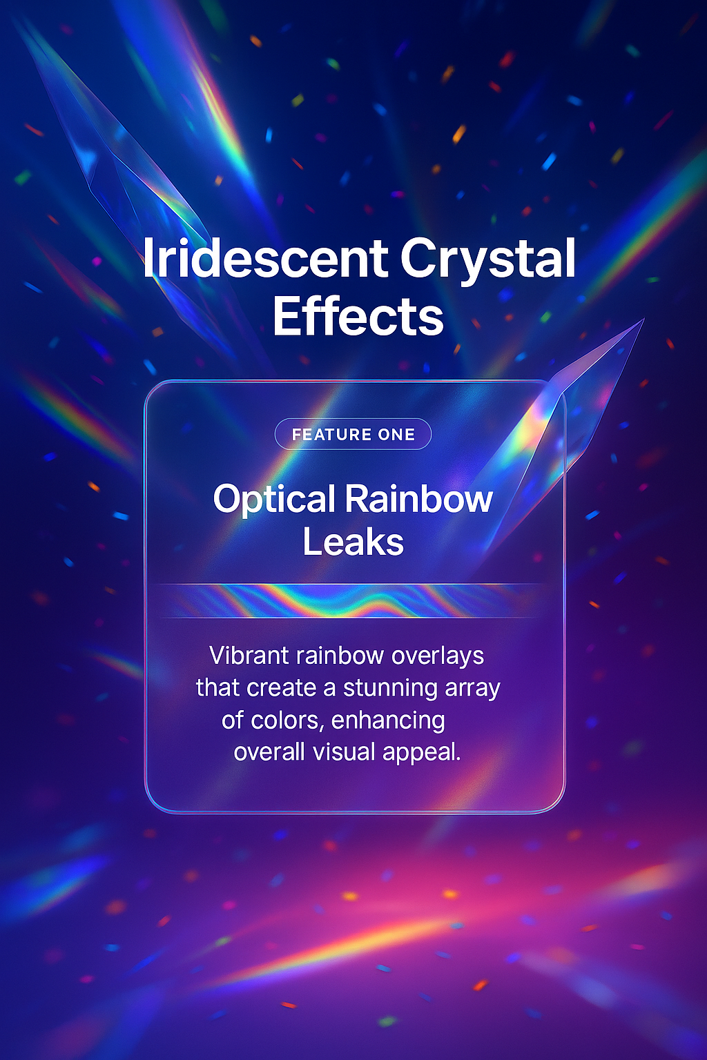 /Collection: /by davooda/Type: PNG/A vibrant visual featuring iridescent crystal glare and rainbow overlays. The design showcases optical effects with colorful light streaks and confetti, enhancing visual appeal.