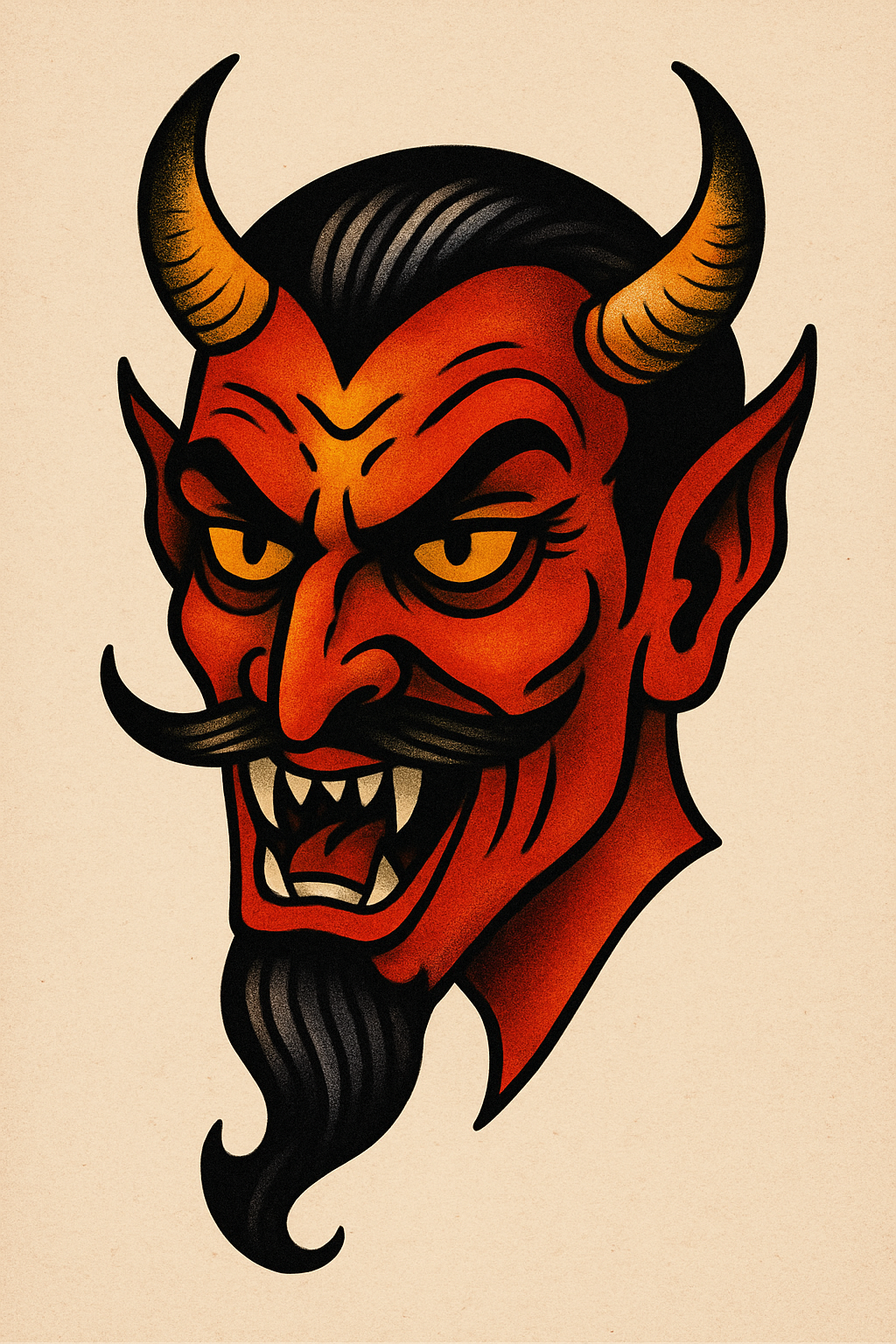 Vibrant Devil Illustration with Bold Colors and Intricate Details