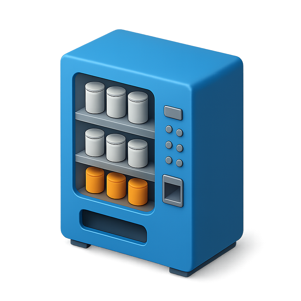 /Collection: /by davooda/Type: PNG/A stylized 3D vending machine icon depicted in a three-quarter view. The machine features shelves with cylindrical cans, showcasing a modern design with a blue exterior.