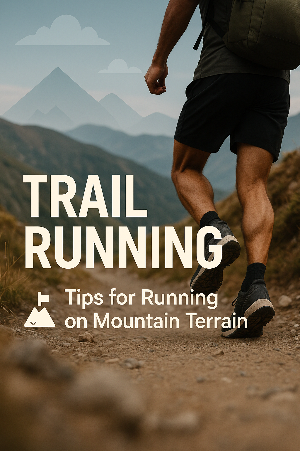 /Collection: /by davooda/Type: PNG/Informative graphic featuring a runner on a mountain trail, ideal for promoting trail running tips. The modern design blends outdoor adventure with practical advice.