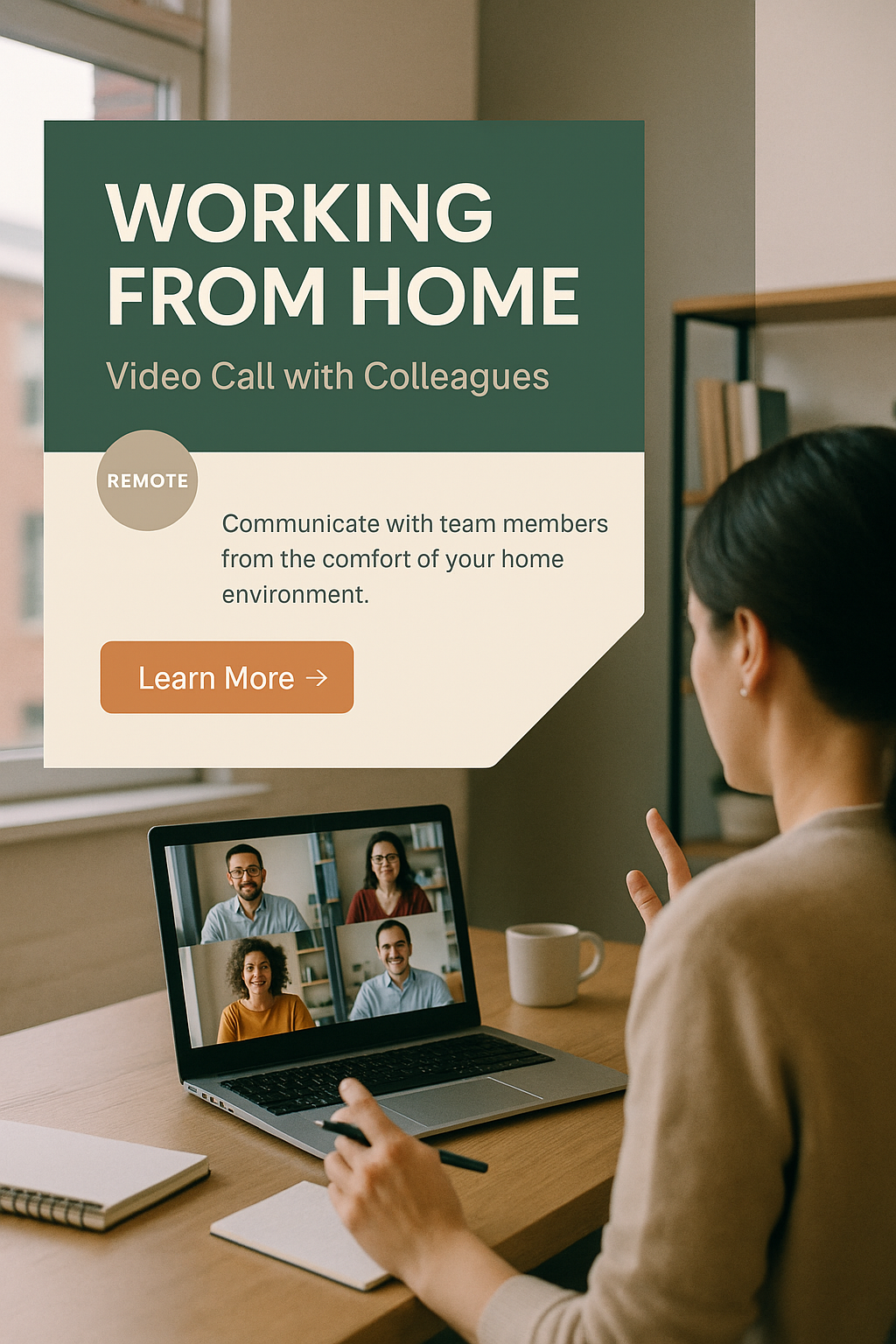 Remote Work Promotion Graphic Featuring Productive Home Office