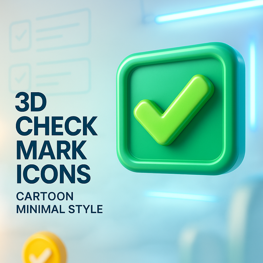 /Collection: /by davooda/Type: PNG/A vivid representation of 3D check mark icons in a realistic style. The design features a minimal yet engaging aesthetic, suitable for a LinkedIn carousel.