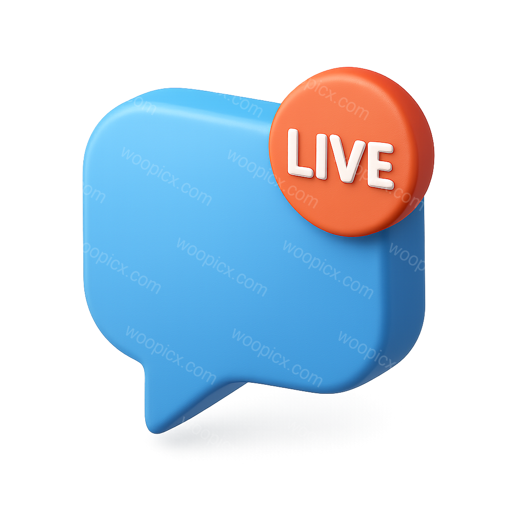 /Premium/Collection: /by davooda/Type: PNG/A visually appealing 3D icon of a chat bubble in blue, featuring an orange circular 'LIVE' notification. The design has a transparent background and showcases a three-quarter view with a volumetric, isometric feel.