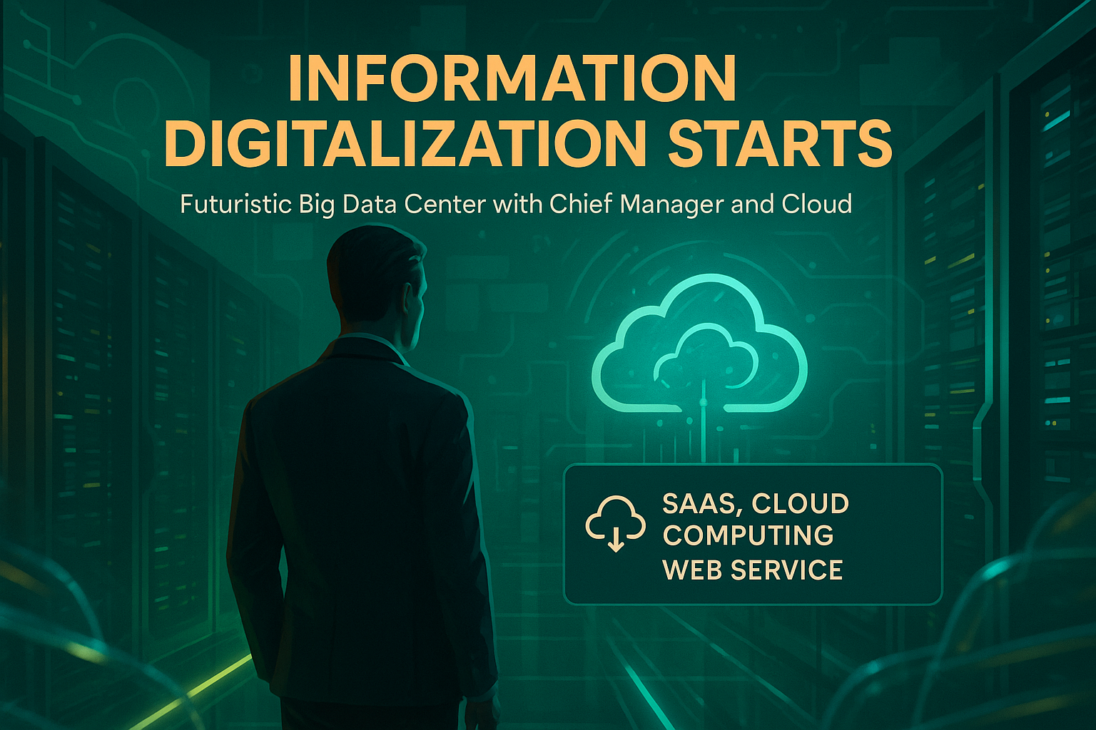 Futuristic Data Center Graphic Featuring Tech Guru and Digitalization Theme