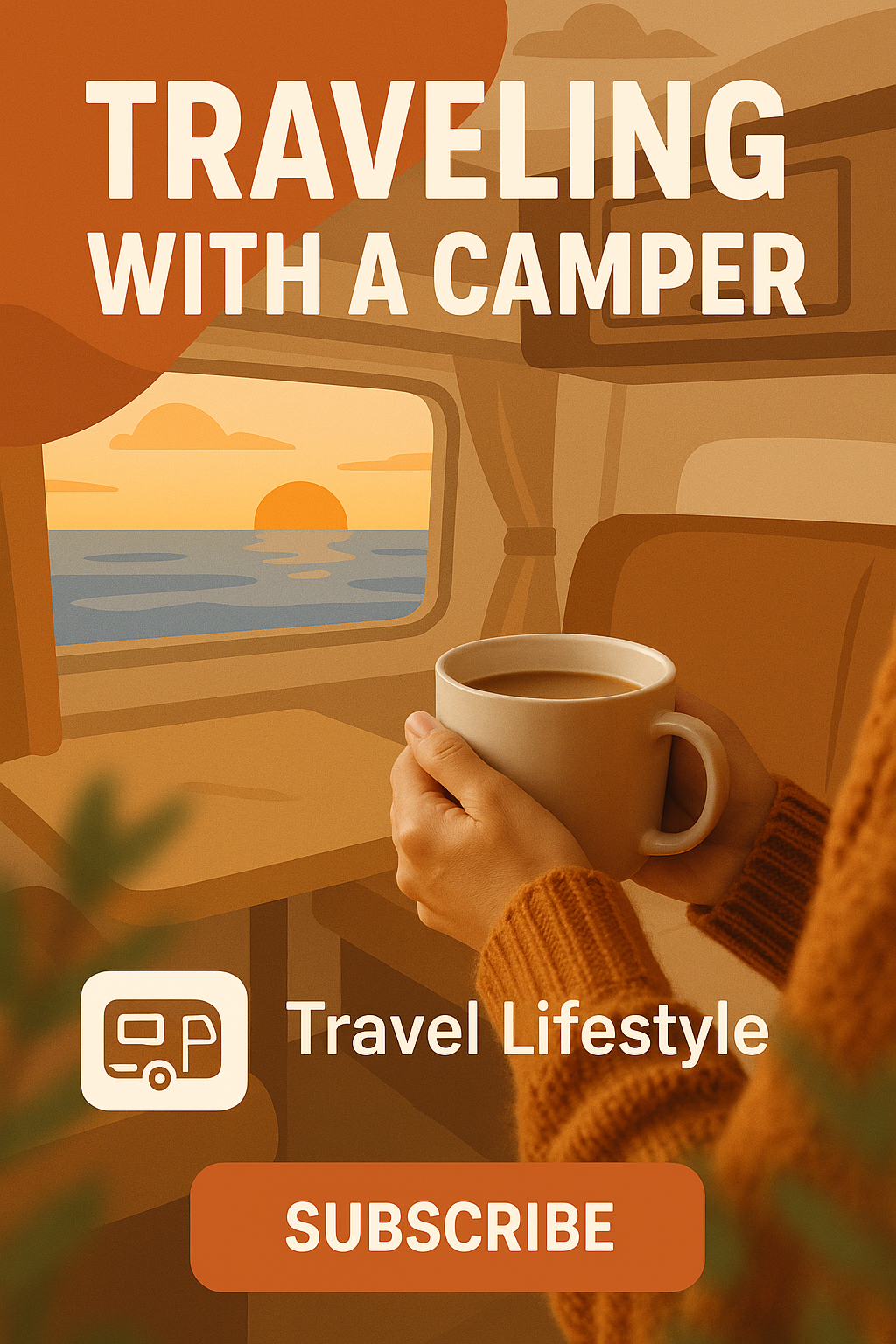 Inviting social media post showcasing a travel lifestyle theme, featuring warm colors and a cozy atmosphere, ideal for travel enthusiasts and camper lifestyle followers.