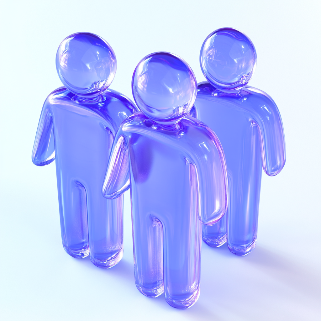 3D graphic featuring three transparent, purple figures symbolizing teamwork and collaboration, ideal for concepts related to unity and partnership.