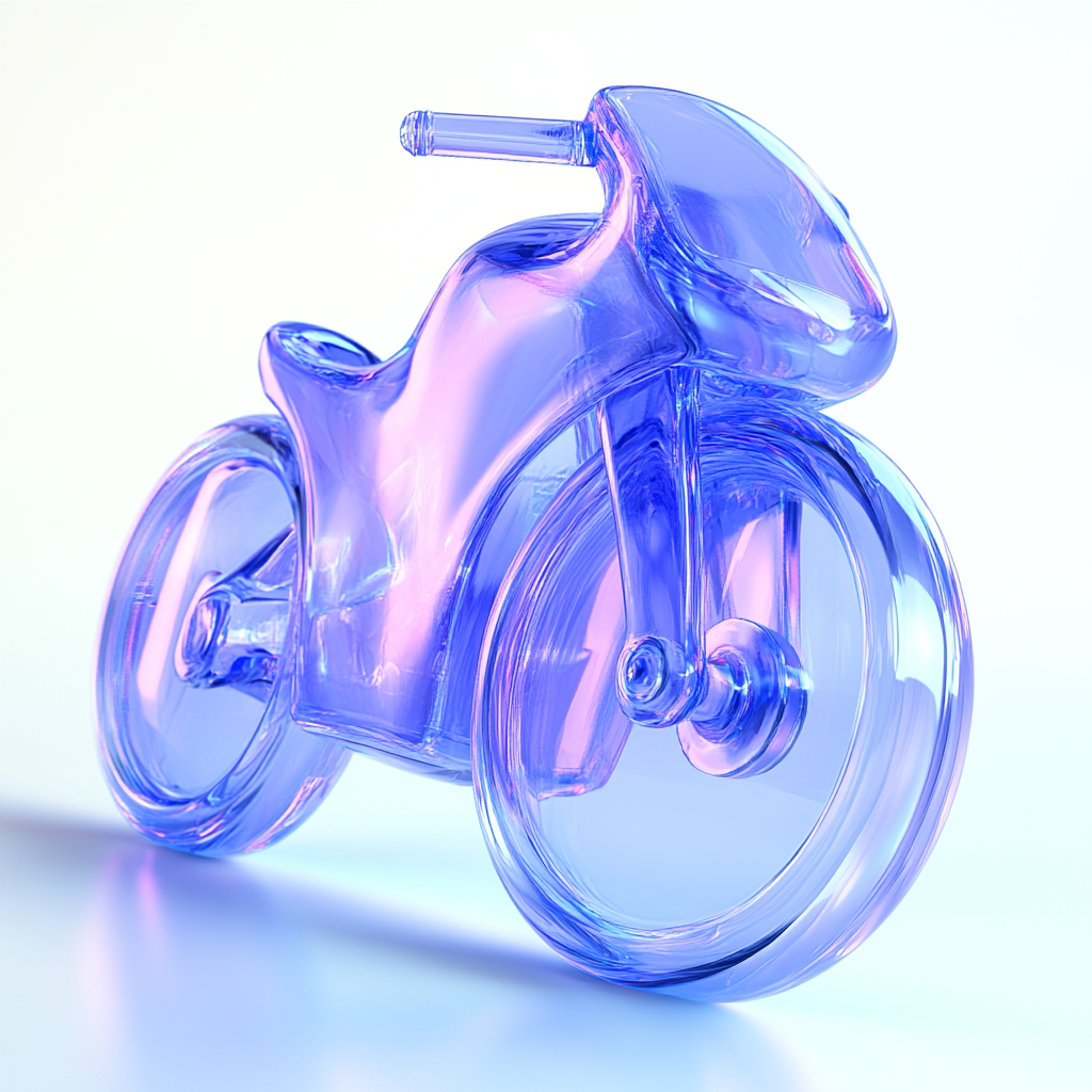 A creative representation of a motorcycle in translucent glass, showcasing a modern and artistic design. Ideal for art displays or product showcases.