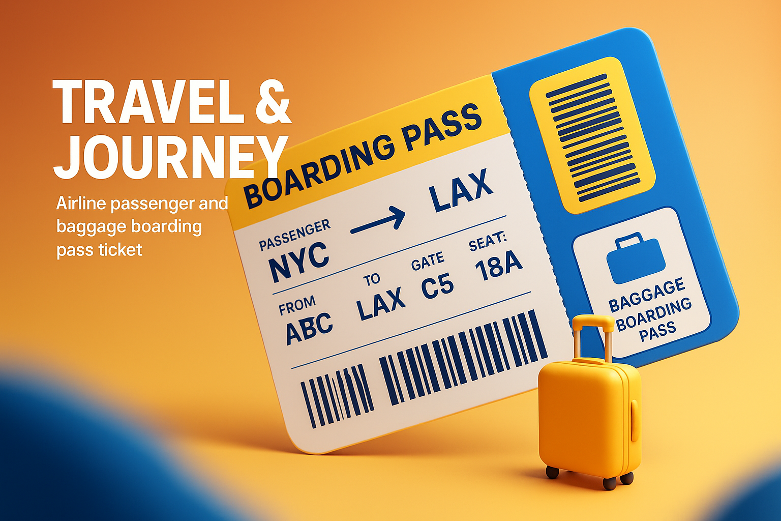 A vibrant graphic showcasing a stylized airline boarding pass with travel-related elements, ideal for travel blogs, websites, or promotional materials.
