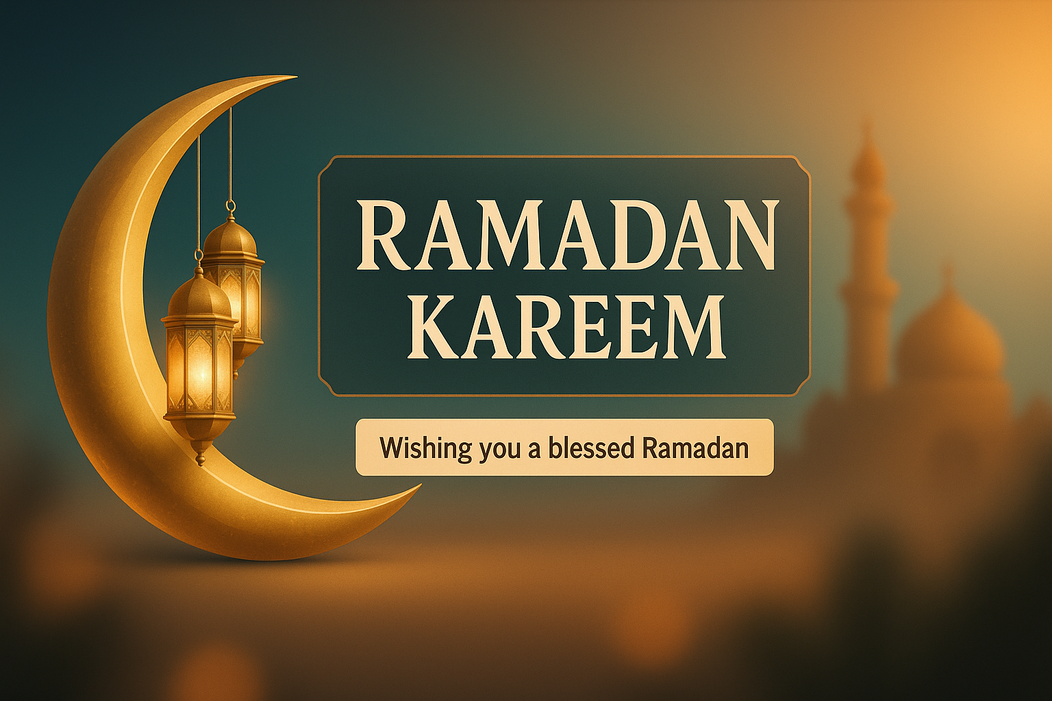 Elegant Ramadan Greeting Card with Crescent Moon and Lanterns