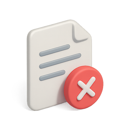A modern and minimalistic icon depicting a document with an error symbol. Ideal for user interface design, apps, or website features indicating file issues.