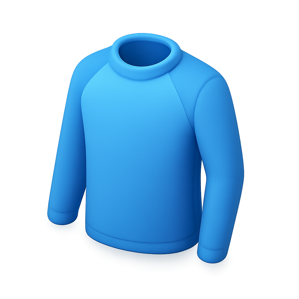 A vibrant blue 3D sweater icon displayed in a three-quarter view, featuring a smooth, volumetric design on a transparent background.