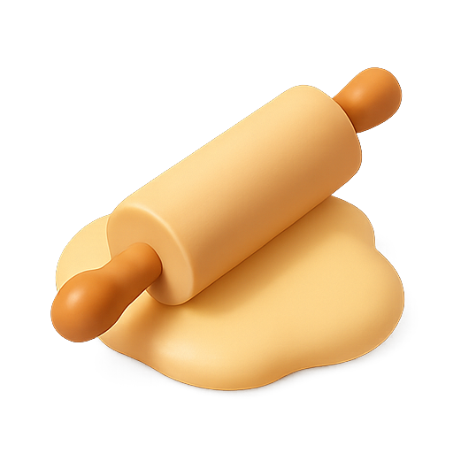 A minimalist illustration of a rolling pin resting on a piece of dough, showcasing a modern design suitable for kitchen-themed graphics or culinary branding.