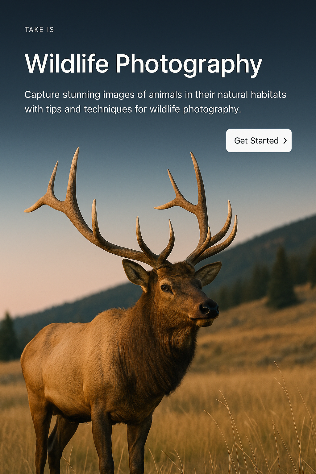 A web page design featuring a majestic elk in a natural setting, highlighting wildlife photography tips. Includes a clear call-to-action button for users.