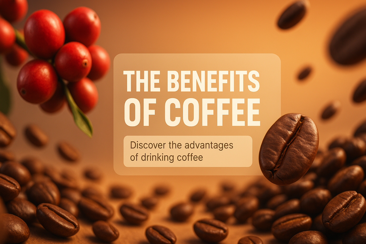 Coffee Benefits Promotional Graphic with Coffee Beans and Berries