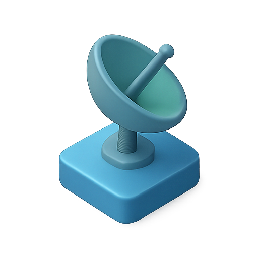 Stylized 3D rendering of a satellite dish on a square base, showcasing a modern design suitable for tech-related applications and digital communications.