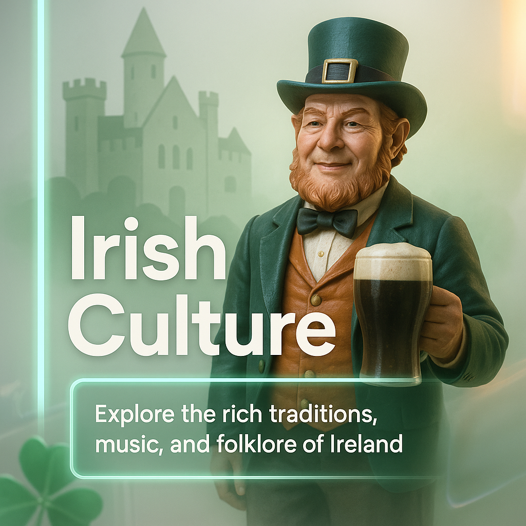 /Collection: /by davooda/Type: PNG/Vibrant promotional image featuring a leprechaun holding a pint of beer, celebrating the rich traditions and folklore of Ireland. Ideal for cultural events or tourism marketing.