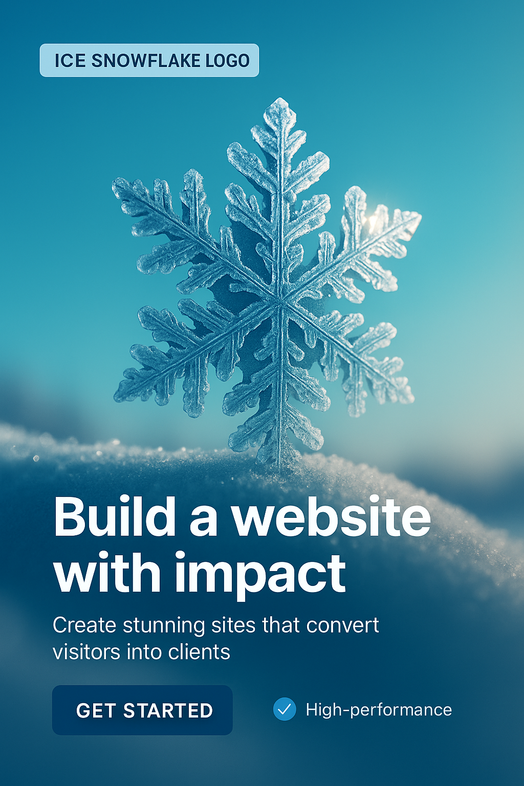 This image features a frosty snowflake against a blurred background, promoting website design services with a modern, clean aesthetic. It targets businesses looking to enhance their online presence.
