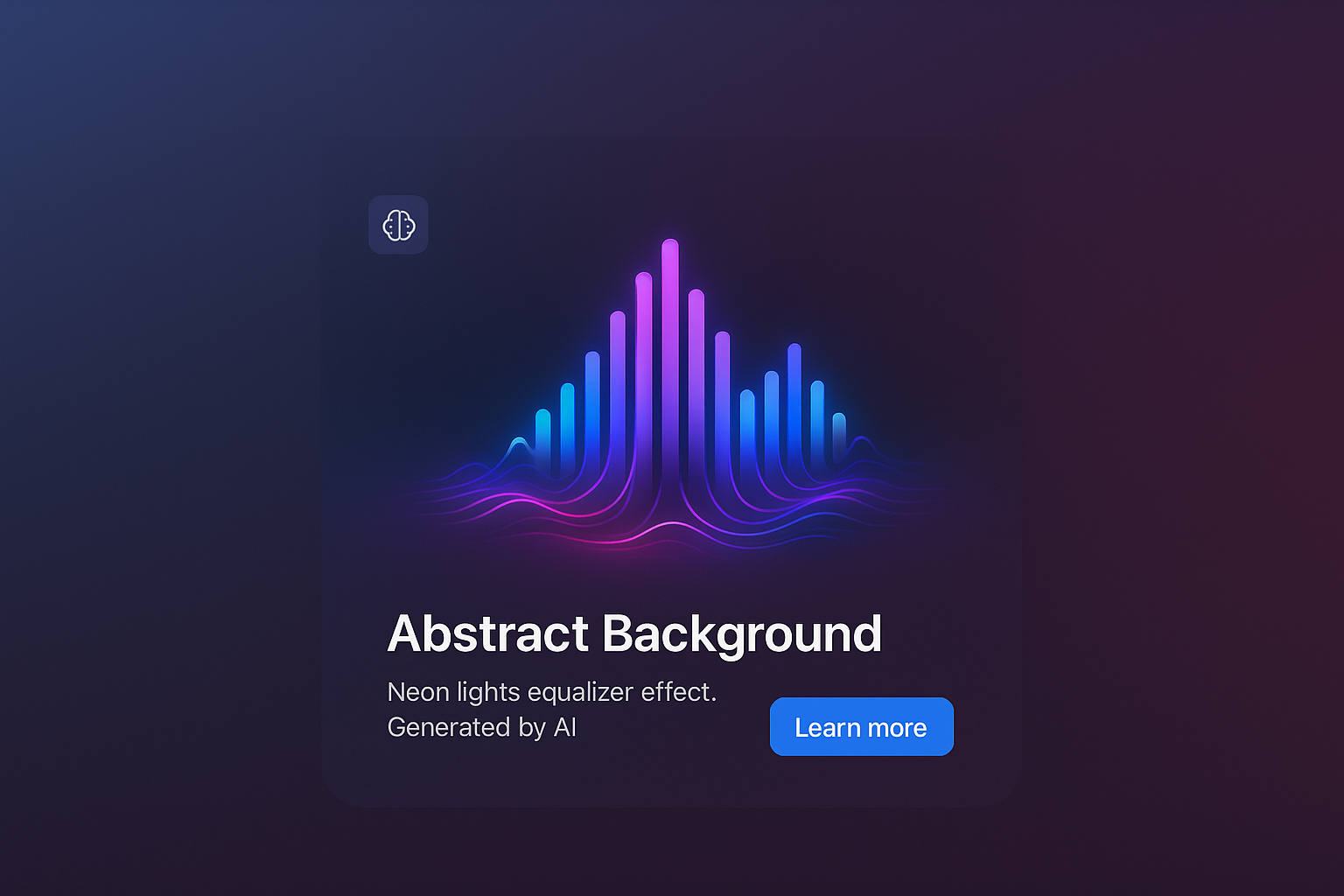 An abstract design featuring a neon lights equalizer effect. The scene is zoomed out, showcasing a vivid gradient background and a small action button.