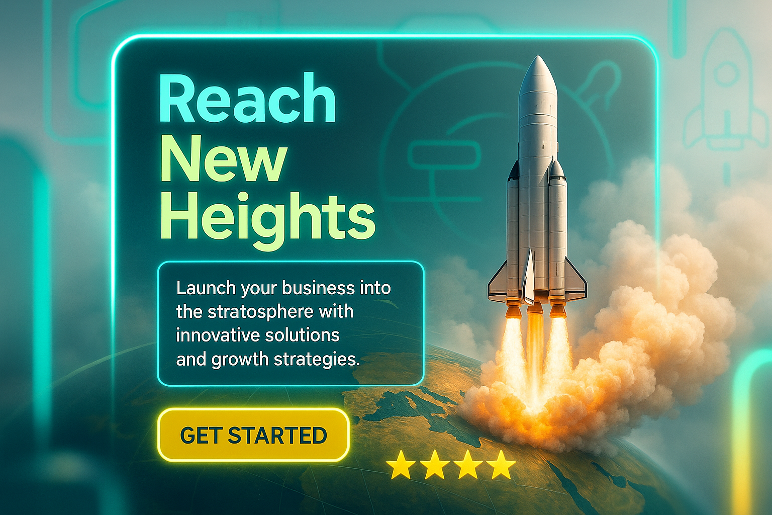 Dynamic Promotional Graphic Featuring a Rocket Launch Theme