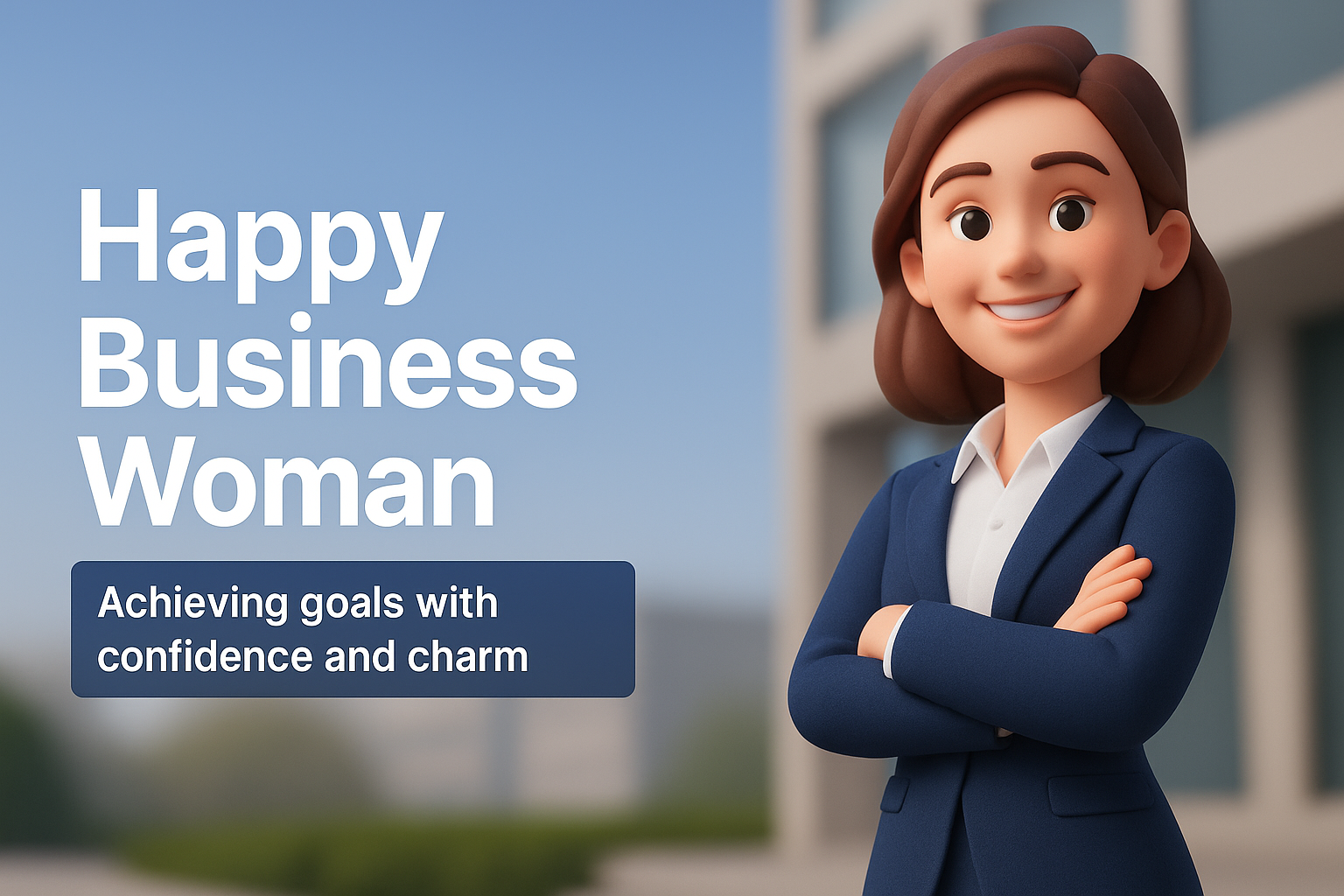 /Collection: /by davooda/Type: PNG/A cheerful business woman stands confidently outdoors, arms crossed and smiling. She embodies professionalism and positivity, set against a soft gradient background.