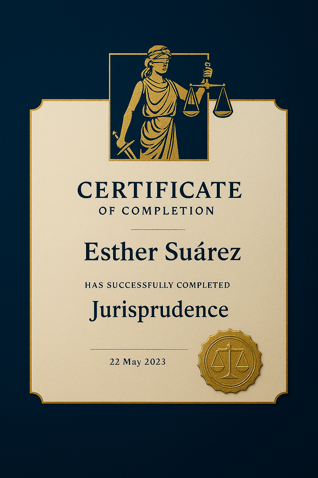 /Collection: /by davooda/Type: PNG/Formal certificate design showcasing Lady Justice, suitable for academic or professional achievements. Features gold accents and a classic layout ideal for legal education.