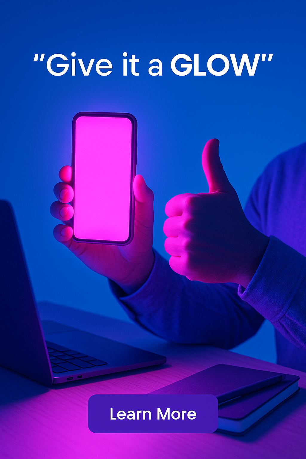 Neon Glow Atmosphere with Phone and Call-to-Action