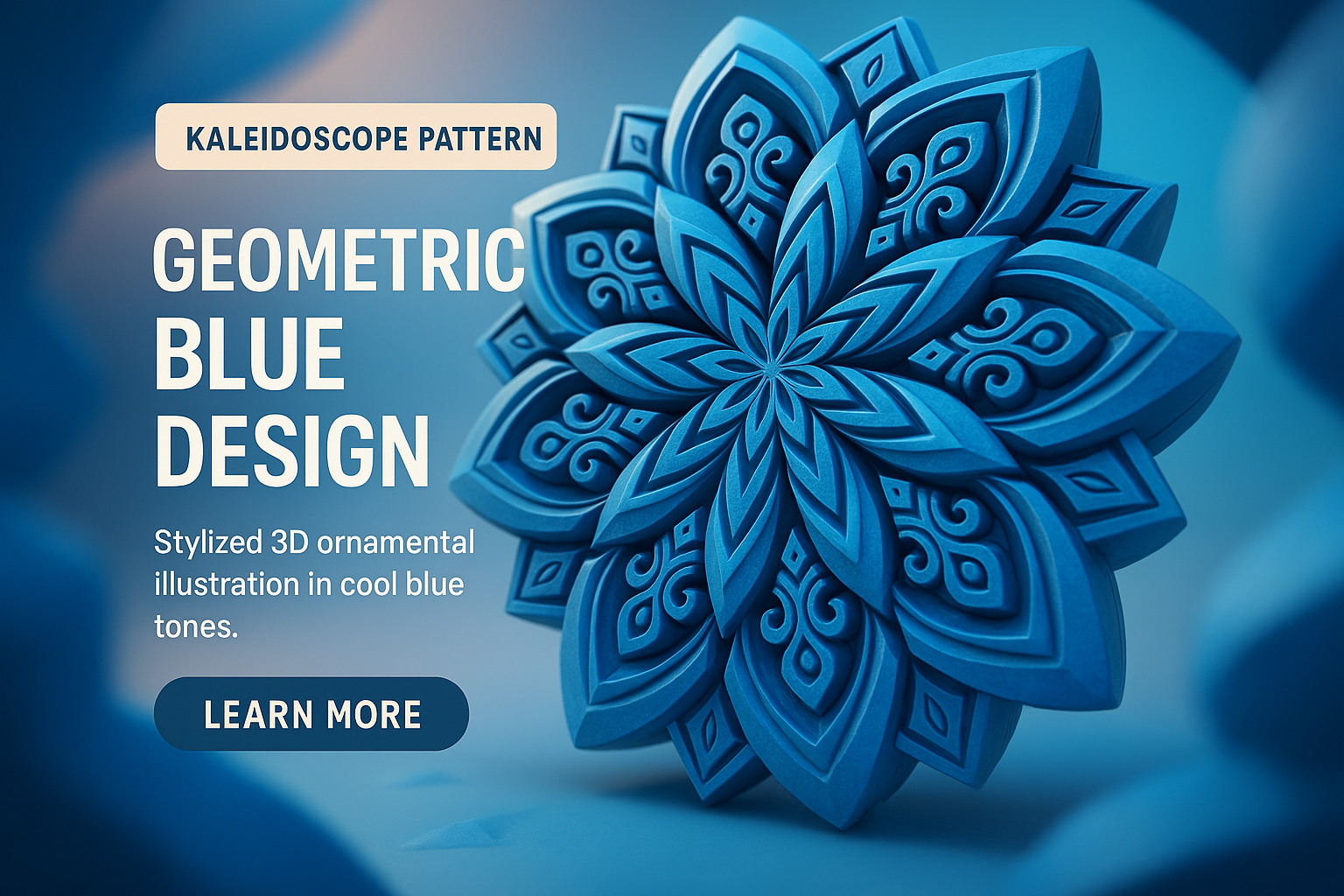 Stylized 3D Geometric Blue Design with Ornamental Pattern