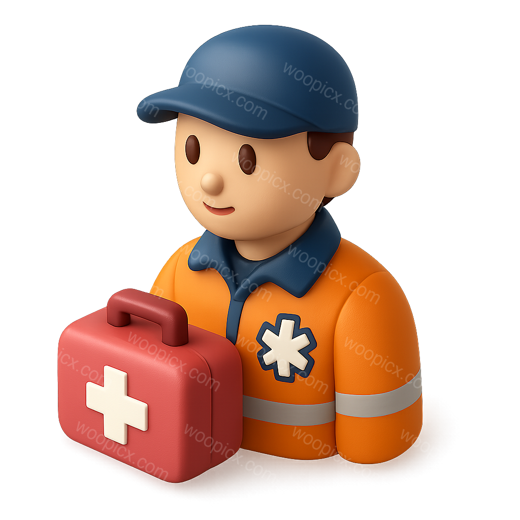 /Premium/Collection: /by davooda/Type: PNG/A stylized 3D illustration of an EMT character holding a red medical bag. The character is wearing an orange uniform and a blue cap, presented in a three-quarter isometric view with a smooth, volumetric appearance.