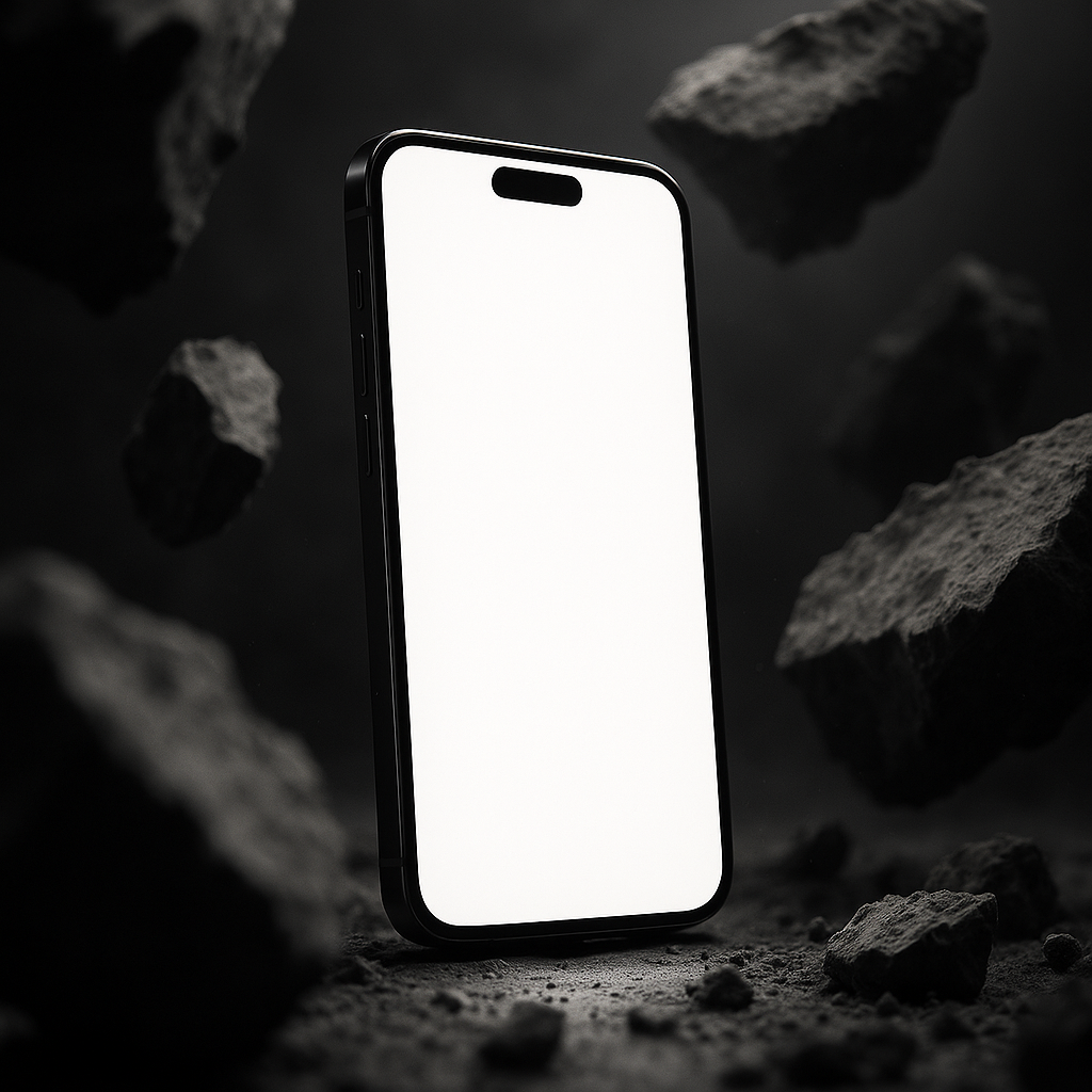 Futuristic Smartphone Mockup Surrounded by Abstract Rocks
