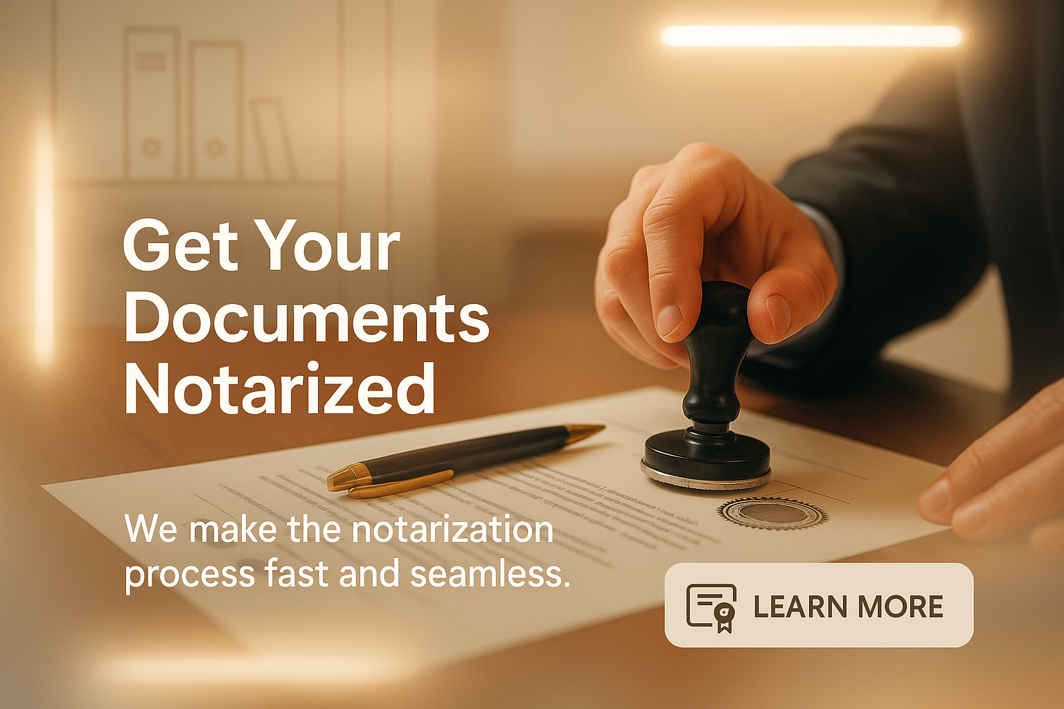 /Collection: /by davooda/Type: PNG/A promotional graphic showcasing a hand stamping a document with a notary seal, designed to emphasize the ease of the notarization process. Ideal for service marketing.