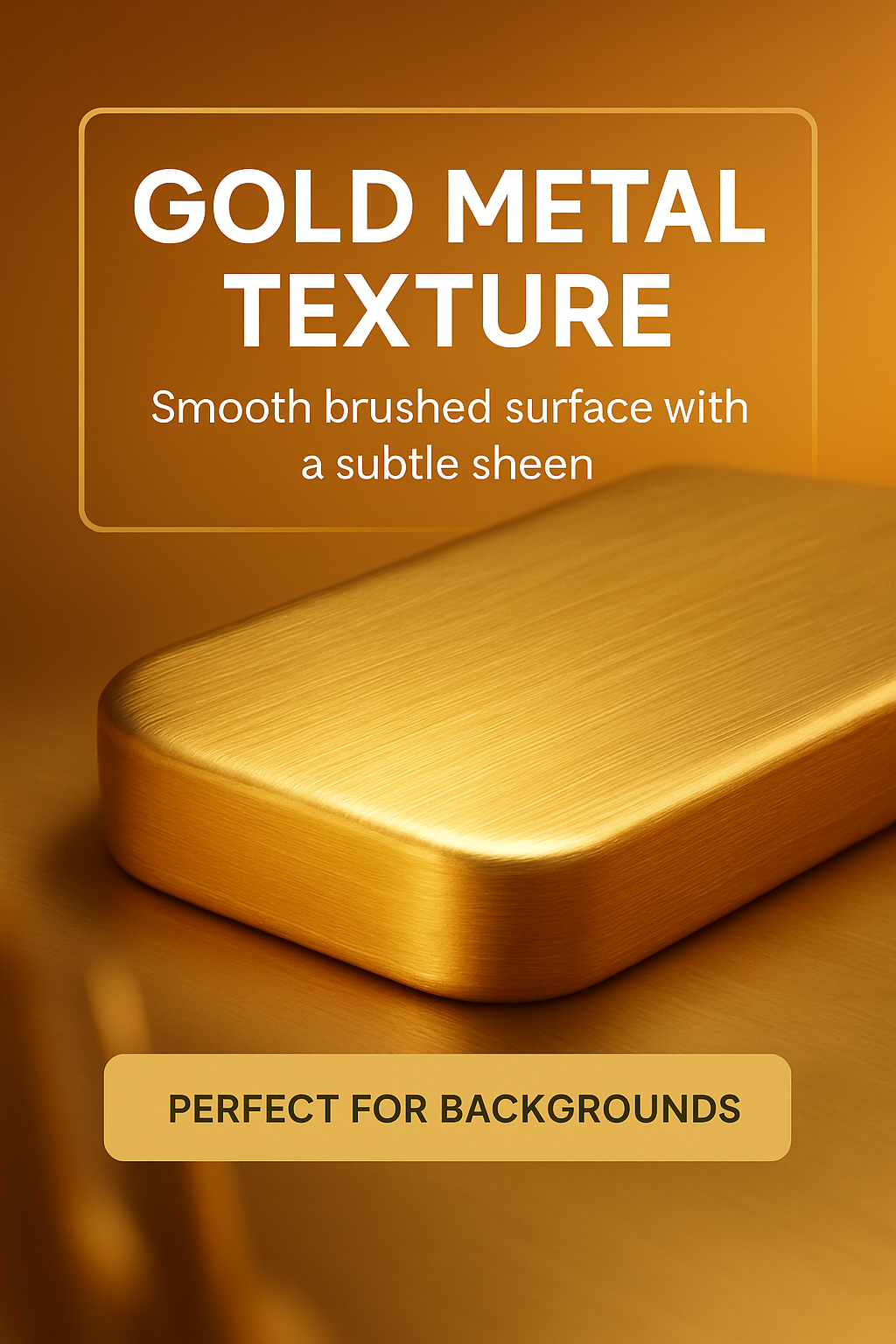 This image showcases a smooth, brushed gold metal texture, ideal for use as a background in various design projects. Its subtle sheen adds elegance.